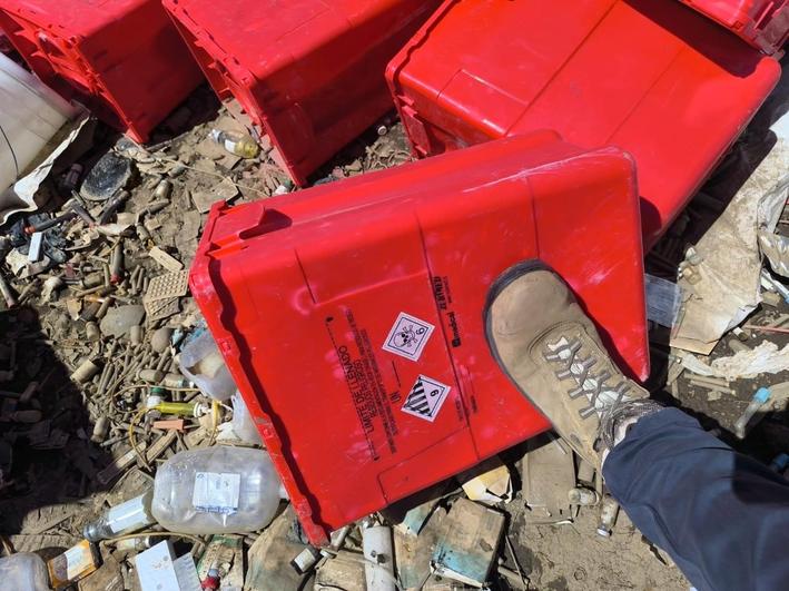 Los equipos de las instituciones anteriormente mencionadas ingresaron a la propiedad para verificar los hechos denunciados, encontrándose con una situación alarmante: cerca de 560 metros cuadrados estaban completamente cubiertos con residuos, se evidenciaron al menos 100 maxisacos con contenido de residuos de centros de salud no identificado, junto a un gran volumen de bolsas rojas y amarillas (etiquetado que presume la presencia de residuos peligrosos) y envases vacíos de productos de laboratorio. La pila de acopio alcanzaba unos 2 metros de altura. En el suelo, se encontraron numerosos elementos a libre exposición que constituyen un peligro inminente, tales como pilas, jeringas con agujas, y material quirúrgico (guantes, tijeras, cubetas, etc.), categorizados como residuos peligrosos y especiales, principalmente cortopunzantes.