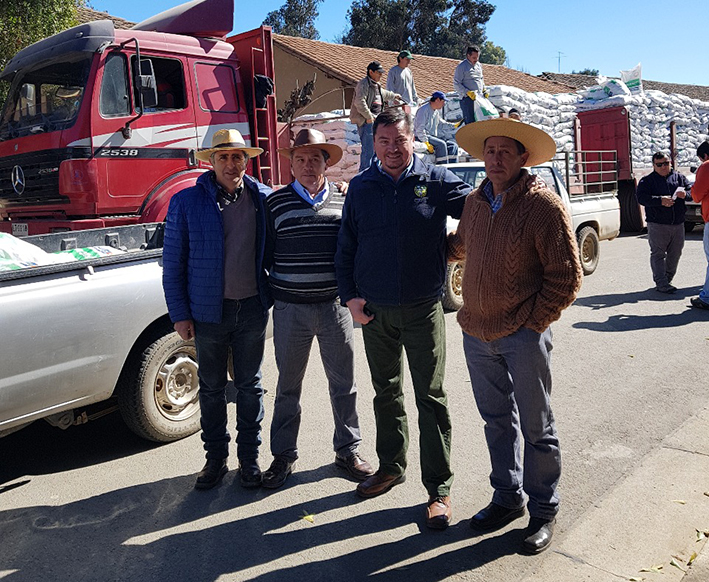 Alcalde de la Comuna de Paredones, J. Sammy Ormazábal L. junto a Juan Carol García, Director Regional de Indap y a funcionarios de Indap Lolol y Prodesal Paredones, realizaron la entrega de sacos de cubos de alfalfa a 214 beneficiarios de Prodesal Paredones del rubro bovino, ovino y equino, quienes llegaron muy temprano a la Plaza de Armas de Paredones para recibir el forraje para sus animales.