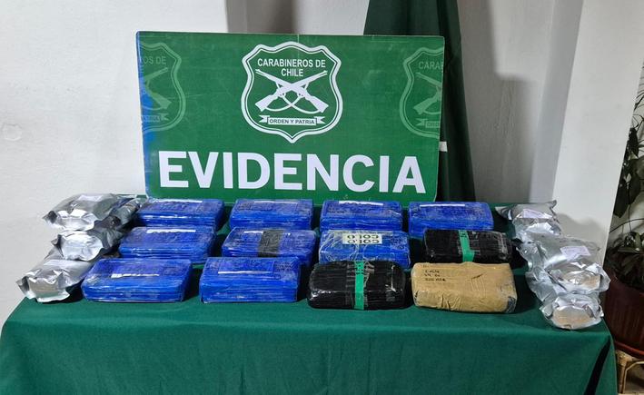 Al revisar el interior del automóvil, Carabineros encontró 12 paquetes de cocaína con un peso aproximado de 13 kilos y 8 paquetes de cafeína, sustancia utilizada comúnmente para aumentar el volumen de la droga. El avalúo de la droga incautada fue estimado en $127.650.000.