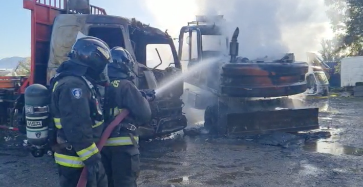 Una maquinaria agrícola y un camión resultaron quemados producto de un incendio que la mañana del domingo se registró en el sector de Quinahue en la zona rural de la comuna de Santa Cruz.