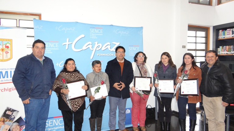 Con la presencia del Alcalde de Marchigüe, Héctor Flores Peñaloza, y del Director Regional de SENCE, Cristian Pavez Herrera, cerca de 45 mujeres de la comuna de Marchigüe recibieron su certificación tras haber realizado con éxito los cursos de capacitación Gestión de Emprendimiento y Pastelería, ambos ejecutados hace algunos meses en la comuna a través del Servicio Nacional de Empleo en conjunto con la oficina OMIL de la Municipalidad a través del programa Más Capaz.