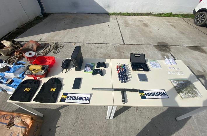 Asimismo, la BIRO Mostazal encontró especies sustraída en robos, indumentaria con logos PDI falsos, 5,5 gramos de clorhidrato de cocaína, 2,8 gramos de cannabis y 100,8 gramos de cocaína base.