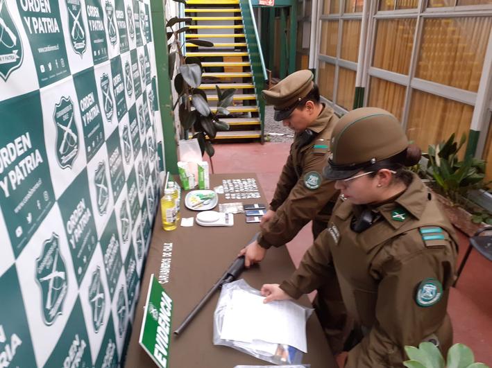 Al ser detenido, los efectivos policiales logran establecer que el delincuente portaba un arma de fuego corta. Luego al allanar su departamento carabineros encontró más armas de fuego, entre ellas una escopeta, además de municiones, electrodomésticos y varias bicicletas y neumáticos que al parecer serían productos de robo.