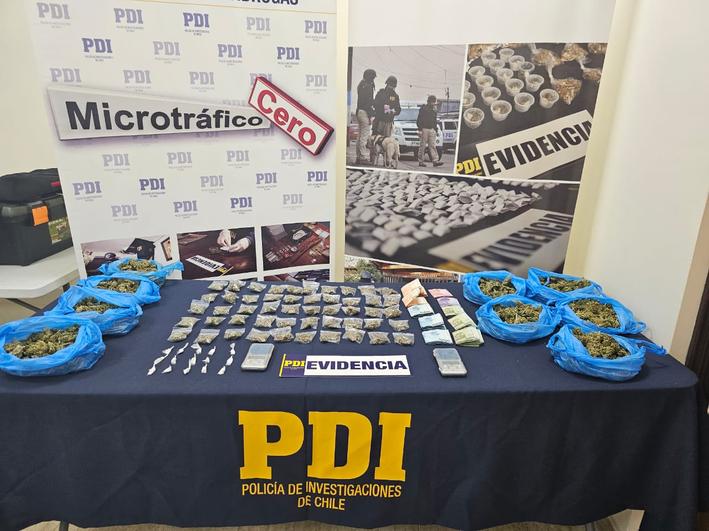 La información recopilada por la PDI fue dada a conocer al fiscal de la causa, quien gestionó ante el Juzgado de Garantía correspondiente, una orden de entrada y registro para las viviendas investigadas, decreto judicial que permitió a la policía civil irrumpir de manera simultánea en los inmuebles y hallar 6,6 gramos de clorhidrato de cocaína y 1.177 gramos de cannabis, droga avaluada en aproximadamente 6 millones de pesos.