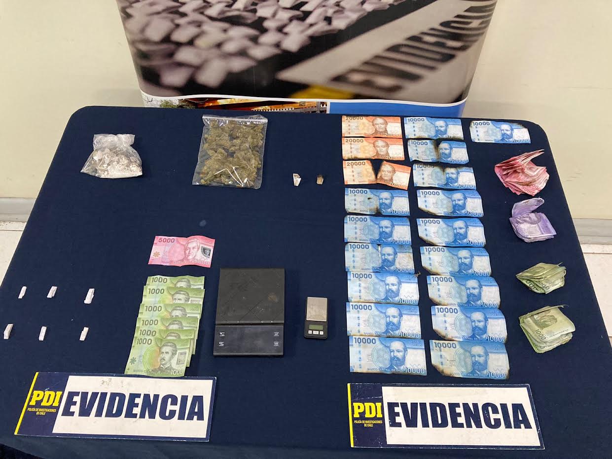 Durante el operativo policial, los detectives también encontraron una balanza digital, que habría sido utilizada para dosificar la droga, y 336 mil pesos en efectivo, dinero aparentemente obtenido de la venta de sustancias ilícitas.