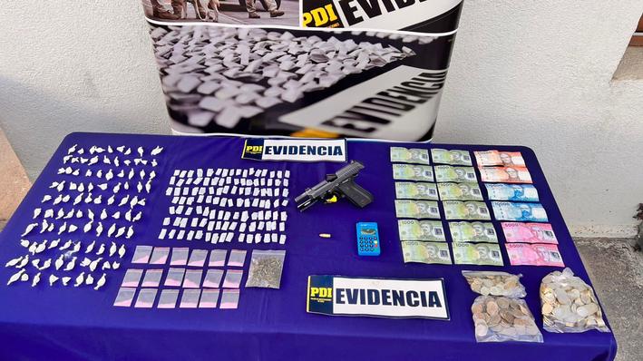 Asimismo, la PDI informó que en el procedimiento también incautó 10 gramos de ketamina, una pistola, munición, una máquina de pago con tarjetas bancarias, 137 mil pesos en efectivo y una motocicleta que tenía encargo por robo.