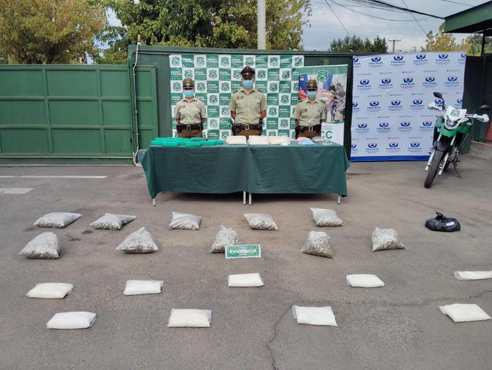 Al llegar al lugar y fiscalizar a los ocupantes del camión y un vehículo, se dan cuenta que no se trataba de un robo, sino de una transacción de droga. En el interior de la cabina del camión, la cual estaba modificada, había una importante cantidad de droga, además se encontraron elementos para pesarla.