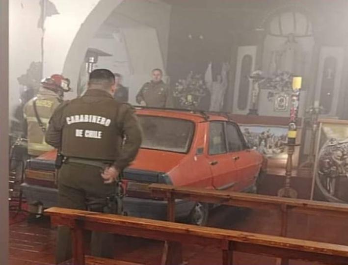 El curioso caso se registró pasadas las 22:30 horas del lunes y tras la denuncia los efectivos policiales se desplazaron de inmediato al lugar, verificando que efectivamente en el templo católico se encontraba un automóvil cercano al altar.