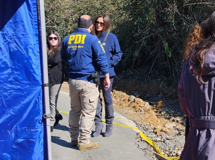 Posteriormente se hizo presente en el lugar la Fiscal Jefe de San Fernando, Yenny Muñoz Torres, quien instruyó a la brigada especializada de la PDI realizar las diligencias y levantamiento de evidencias que permitan determinar la dinámica de estos hechos y establecer si se trata de un homicidio o suicidio.