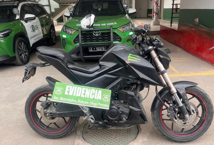 Mientras circulaba por Avenida Membrillar con Manuel Montt, los efectivos policiales lo controlaron, y al notar que la chapa de la moto se encontraba dañada, verificaron los datos de chassis, comprobaron que ésta mantenía encargo por robo con fecha del 15 de julio de 2024.