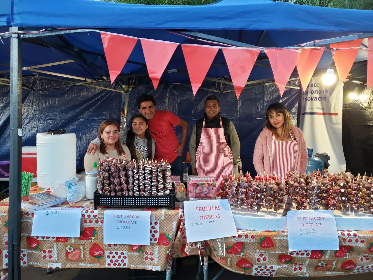 Juan Donoso, vicepresidente de la cooperativa Fruticoop, productor y beneficiario del proyecto valoró la instancia ya que así mantuvo contacto directo con los clientes. Además, señaló que tenía en mente desde hace un tiempo abrir un nuevo emprendimiento. “Estoy en trámite de iniciación de actividades porque quiero poner un carrito en Litueche en el que ofrezca frutillas en brochetas”.